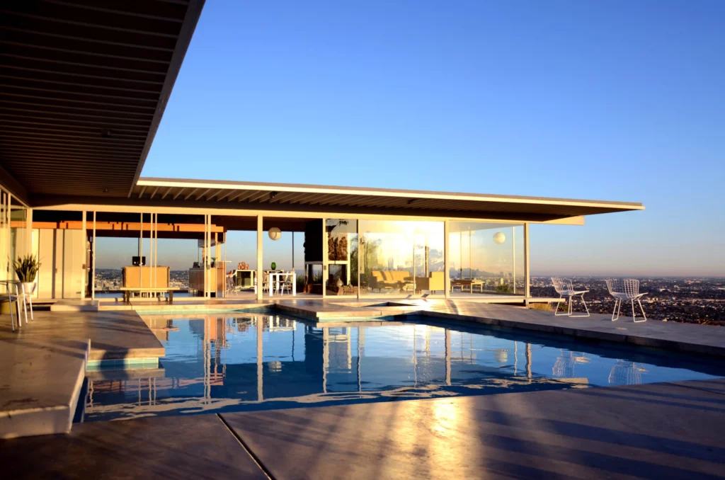 The relevance here lies in its continuation of the same architectural ideals: light, openness, and the ability to merge indoor and outdoor living. While more glamorous in its execution, it reflects the same design lineage initiated by Charles and Ray Eames.