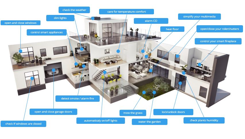 A smart-home system controlling ground-floor features.