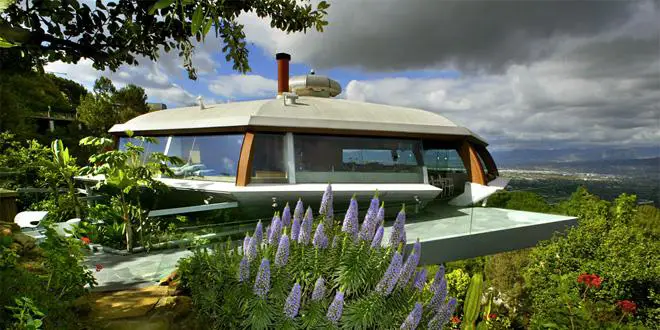 The Chemosphere House in Los Angeles is perhaps Lautner’s most famous creation. Built on a steep hillside, the home is perched on a single concrete column, resembling a spaceship hovering above the city. This design solved the engineering challenge of building on difficult terrain while also making a bold architectural statement.