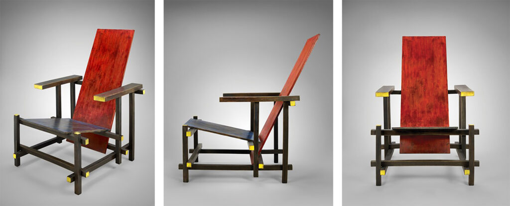 The Red and Blue Chair, designed by Gerrit Rietveld in 1917, serves as a precursor to the Rietveld Schröder House. The chair embodies the same De Stijl principles—primary colors, straight lines, and geometric abstraction. Its presence in the house reflects the continuity between Rietveld’s furniture and architectural experiments. The chair was not just a functional object but a sculptural element that seamlessly fit into the abstract environment of the house.